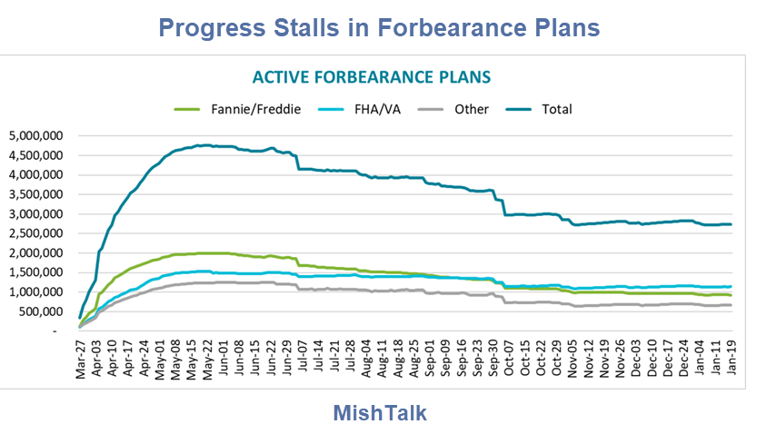The Black Knight Forbearance Tracker shows 2.74 million homeowners were in active forbearance as of January 19.