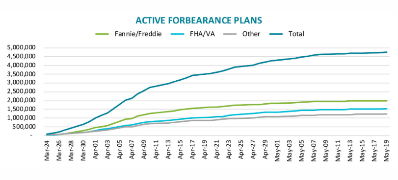 - As of May 19, 2020, 4.75 million homeowners , 9.0% of all mortgages, have entered into COVID-19 mortgage forbearance plans.