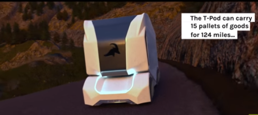 The T-pod is a driverless, fully electric truck with a range of 200km and is designed to replace smaller medium-duty trucks on short trips.