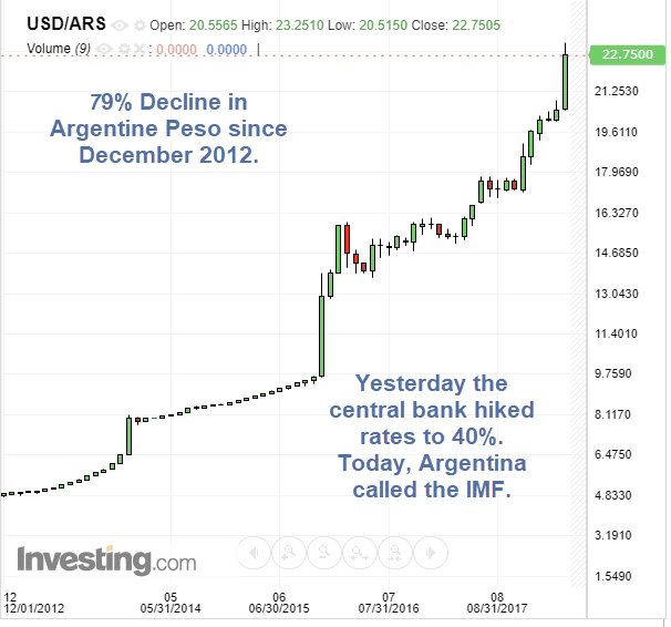 Once again, Argentina finds itself in a currency crisis. Reuters reports Argentina president says seeking financing from IMF.