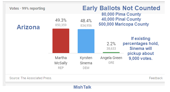 Mish, you may want to follow the vote ‘counting’ development. Apparently Sinema is leading as of Thursday evening. Then there is a lawsuit in Florida on the vote counting (rigging?) too.