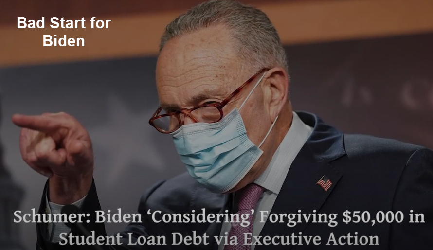 On Monday, Senate Minority Leader Chuck Schumer announced Biden ‘Considering’ Forgiving $50,000 in Student Loan Debt via Executive Action.