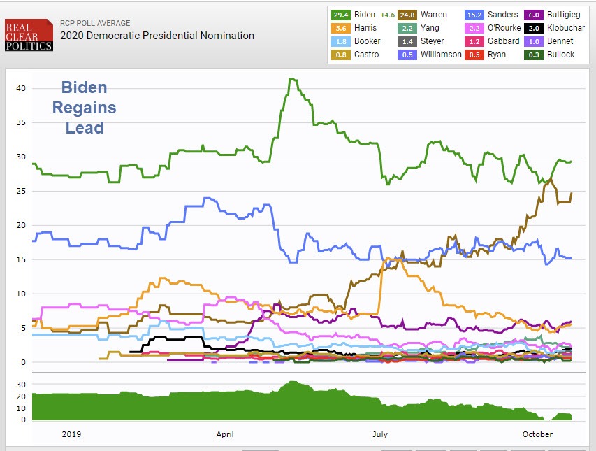 - Survey USA 10/15 10/16: Biden 32, Warren 22, Sanders 17