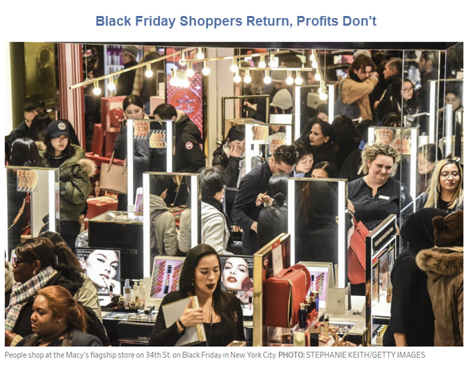 But despite the crowded malls and shopping carts loaded with everything from Christmas pajamas to Samsung televisions, retail profits aren’t keeping pace with the sales gains. Chains from Macy’s to Walmart Inc. are struggling with rising costs as more shopping shifts online.