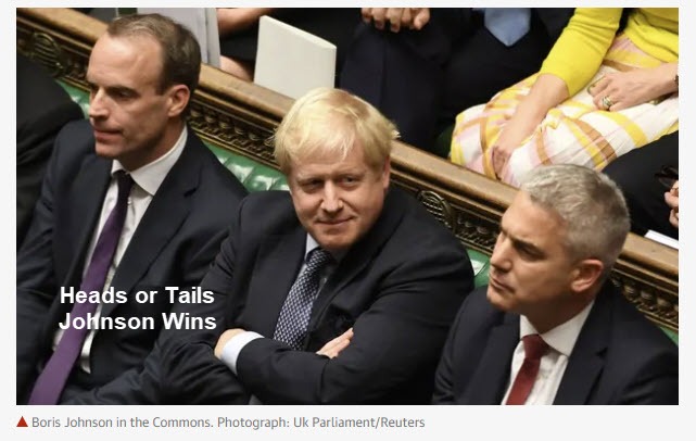 Vote on the programme motion (3 day timetable) to be held around 19:00 BST. If he loses, Boris intends to call an election, though not sure he has the votes for it. Still, he is putting himself in good position, doing everything he can to deliver on Brexit by the end of the month.