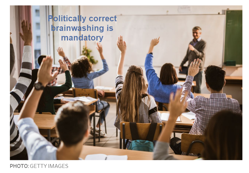 Implementing a socialist system is perceived by the socialists to be justification for any tactic they can conceive including lying to school children with the specific purpose of brainwashing them into believing lies. The domestic terrorism in our streets is the direct result of the brainwashing which has been happening in our schools for some time, and which will continue to happen. The socialists have adopted New Speak as their educational language. Remember Truth are lies, and War is Peace…..
