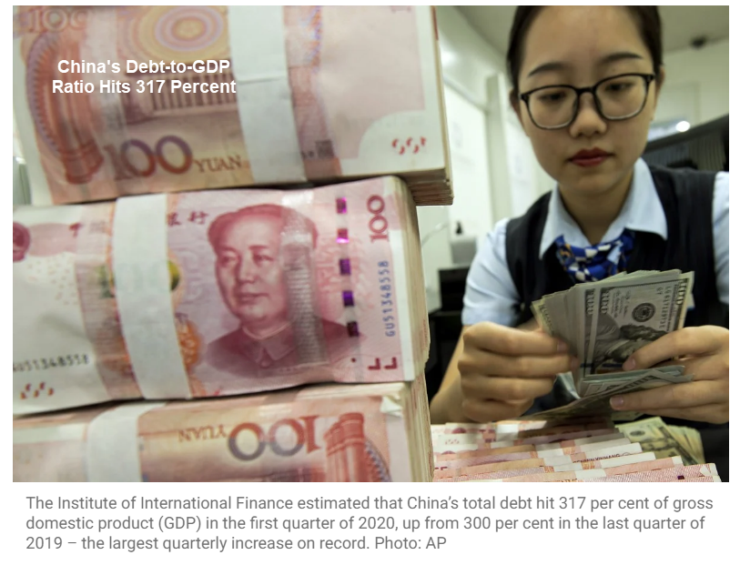 So you say 317% and Wikipedia says its 48.4%. So – big difference. There is almost nowhere that says China’s ratio is even near 100%. So – this must be due to the math of the first quarter in which the GDP was essentially almost ZERO – sol this is a misleading article. The debt to GDP will probably normalize back to below 100% in which case it will be substantially lower than the USA’s ratio…just saying…lets put it in context.