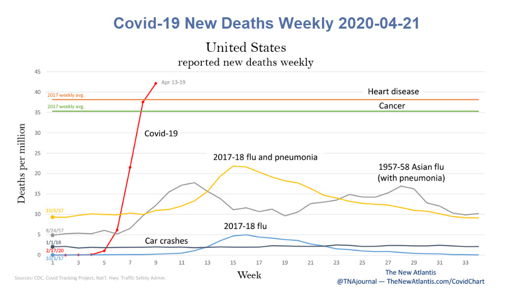 The charts and comments below are from the Atlantis article Not Like the Flu, Not Like Car Crashes, Not Like…