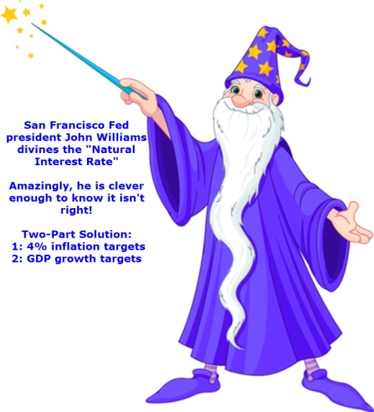 The hubris of Williams is amazing. He claims to be able to figure out the “natural rate of interest”, which he cannot do, then he believes he is smart enough to know by what degree the Fed should circumvent it.