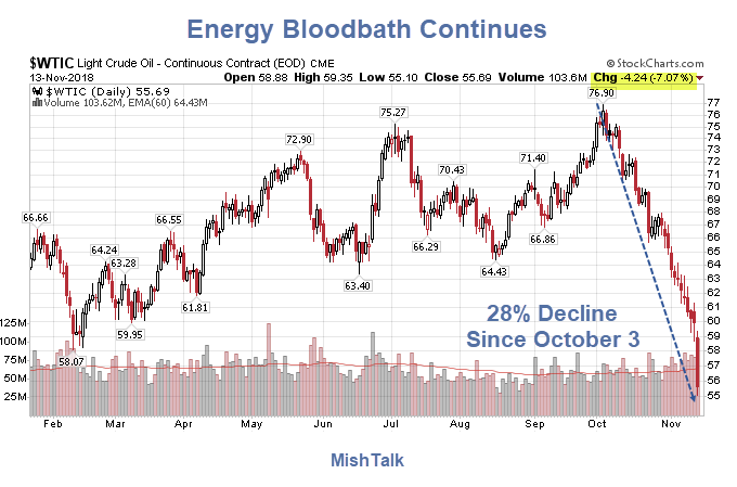 I will be on Coast to Coast AM tonight (Tuesday November 13) to discuss the energy bloodbath. I am on about four times a month just after Midnight Central for economic updates.