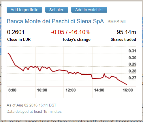 Yesterday the Financial Times reported Monte dei Paschi Rescue Hits Bank Shares.