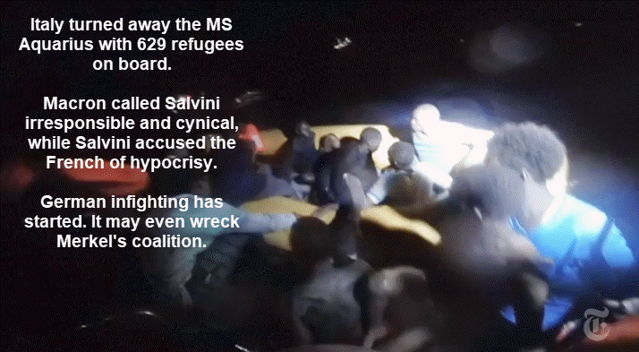 “Salvini’s decision triggered an angry reaction from France where Gabriel Attal, a spokesman for Emmanuel Macron’s party LREM, is quoted in the Italian press as saying that it has made him vomit. Macron himself is quoted as saying that the decision was irresponsible and cynical. Corriere della Sera reports that a planned summit between Macron and Giuseppe Conte tomorrow was now at risk because of those comments.”