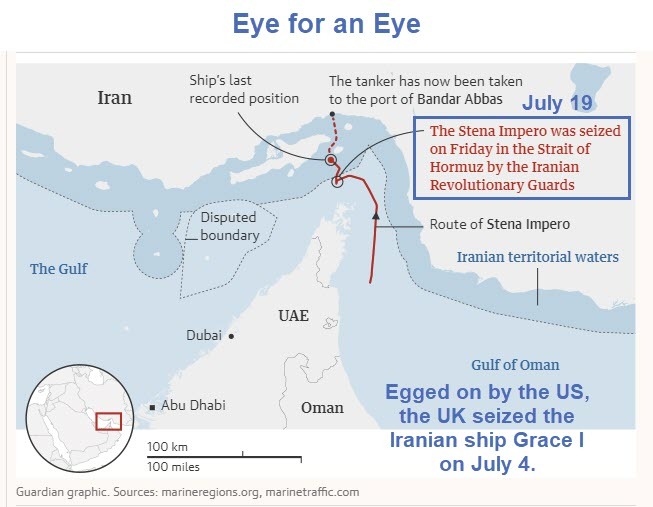 Eurointelligence provides interesting commentary of tit-for-tat ship seizures first by the UK, then by Iran in response.