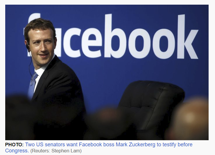 - Two US Senators called on Facebook boss Mark Zuckerberg to testify before Congress