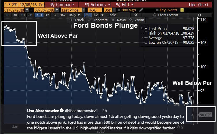 Inquiring minds may wish to read Moody’s downgrade analysis: Ford Ratings Cut to Baa3; Outlook is Negative.