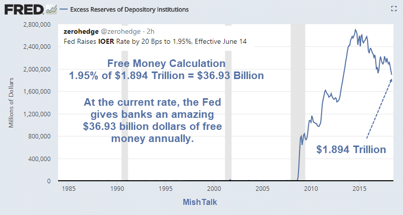 The Fed bumped up the interest it pays on excess reserves today to 1.95%. Currently, excess reserves sit at $1.894 trillion.
