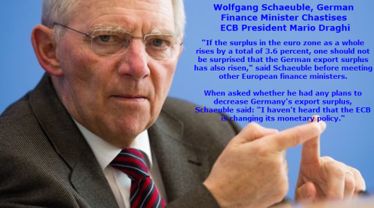 Reuters reports Germany’s Schaeuble blames ECB for German Export Surplus.