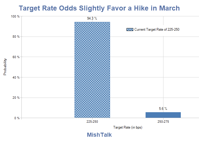 According to Fed Fund Futures on CME FedWatch, the odds of of a Fed interest rate hike in March outweigh those of of a hike in December of 2019.