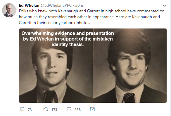 “Ford dismissed Whelan’s theory in a statement late Thursday: “I knew them both, and socialized with” them, Ford said, adding that she had once visited the other classmate in the hospital. “There is zero chance that I would confuse them.”” Like I said. I don’t know why Mish buys these dumb conspiracy theories.