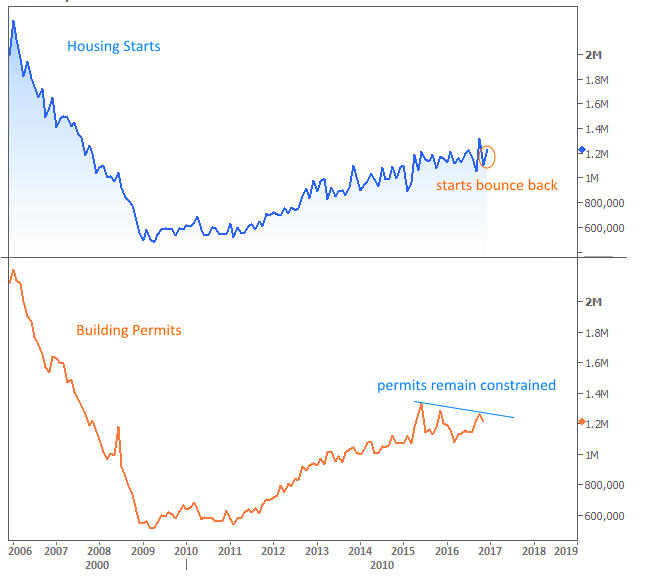 I discount permits in favor of starts as the latter takes a commitment from an owner while the former reflects builder optimism.