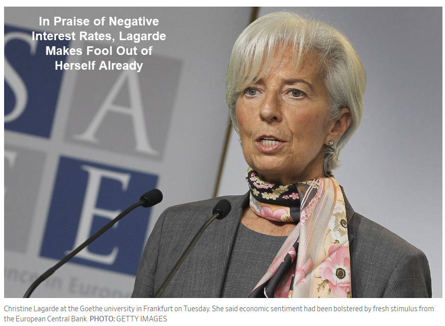 To emphasize the point, Negative Interest Rates Benefit the Global Economy, Says IMF Chief Christine Lagarde.