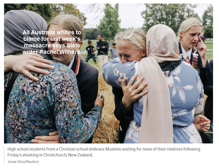 Slate author Rachel Withers says the Christchurch Shootings Should Implicate All White Australians.