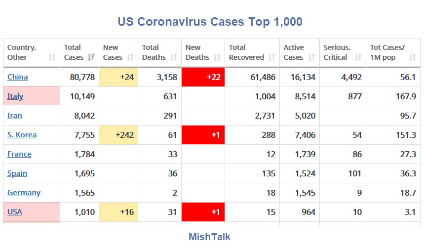 Before we start jumping to conclusions, what are the ratio of infections that are community made versus from people traveling? It makes a HUGE difference. For example, Iowa went from 2 to 13 cases in about a week, but that’s because 12 of them are all people who were on the same cruise together in Egypt. It would be MUCH worse if those 12 had never traveled anywhere.