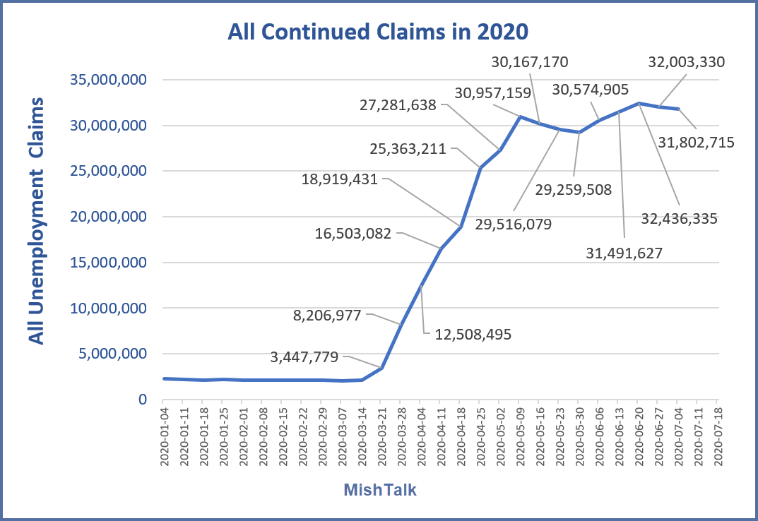 The total number of unemployed is somewhere between the state number (17.3 million) and the all claims number (31.8 million).