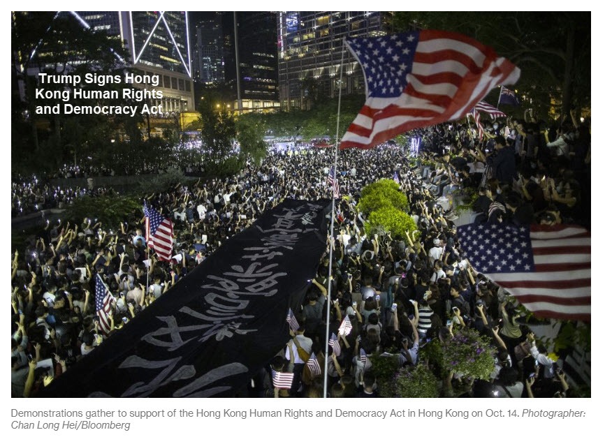 In a move sure to further strain relations, Trump Signs Bill in Support of Hong Kong Protesters.