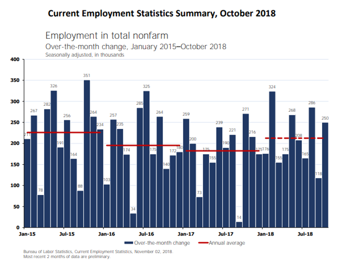 Total nonfarm payroll employment rose by 250,000 in October, and the unemployment rate was unchanged at 3.7 percent, the U.S. Bureau of Labor Statistics reported today. Job gains occurred in health care, in manufacturing, in construction, and in transportation and warehousing.