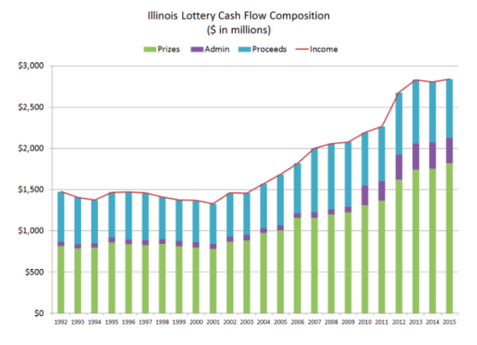 Looking at my data set, of the 33 states where I have data going back to 1992, Illinois ranks 31st, at a compound annual growth rate of only 0.7%. The only two states with worse growth are Louisiana and Ohio (which actually saw its proceeds shrink). State #30 is neighboring state Indiana, which had 1.3% growth per year. Contrast that to a nationwide increase of 4.5% per year, for 23 years. Makes quite a difference.