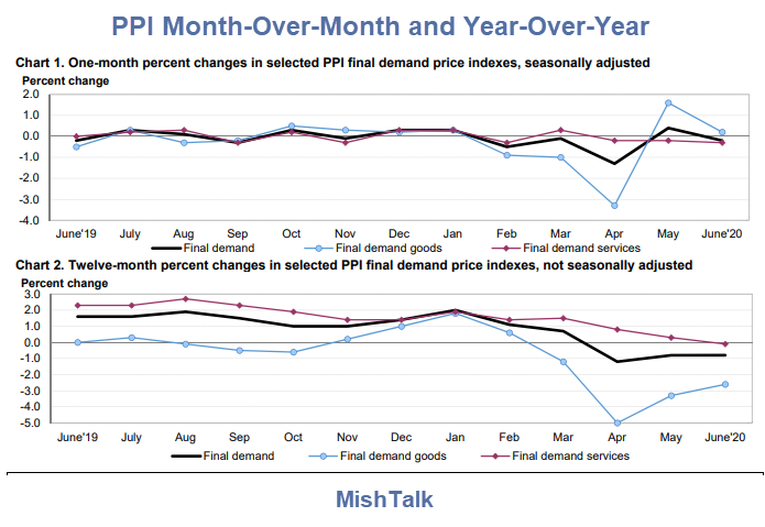The BLS Producer Price Report shows deflationary trends resume in June.