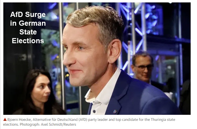 The Guardian reports Far-right AfD surges to second place in German state election.