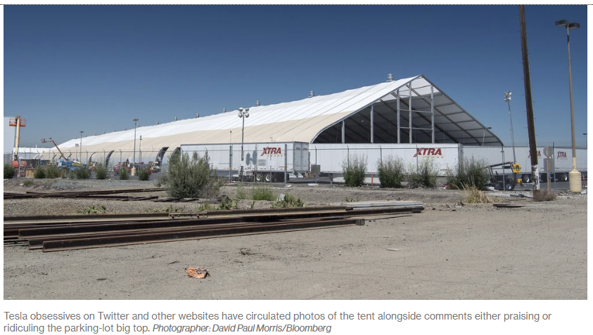 Bloomberg reports The Future of Tesla Hinges on This Gigantic Tent.