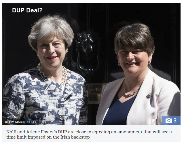 - Third, this sentence strikes me as patently false: “No10 and Arlene Foster’s DUP are close to agreeing an amendment that will see a time limit imposed on the Irish backstop.”