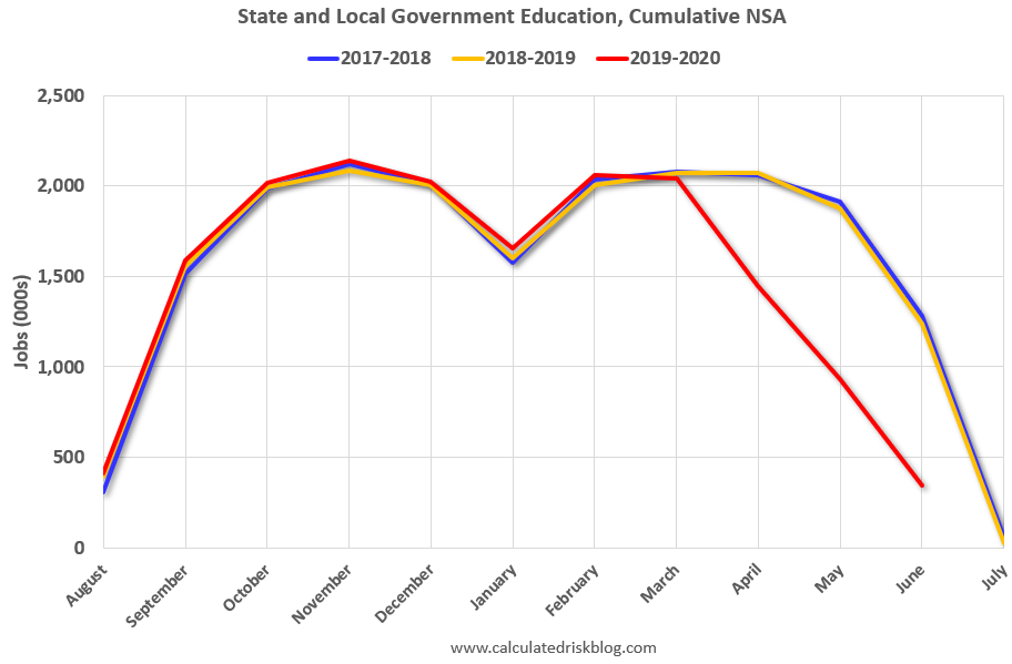 Calculated Risk explains the charts in his post State and Local Government Education Employment will Increase Sharply in July, Seasonally Adjusted