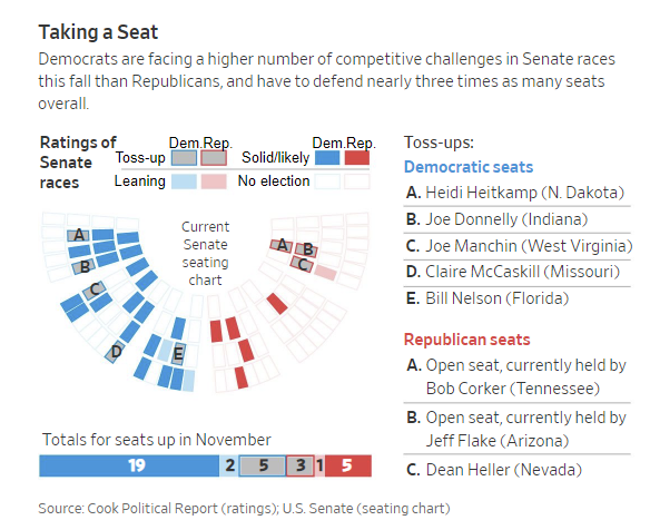 - Donnelly (R) is blowing away Braun (D) in Indiana by 12 points but the poll is a bit stale (Early August)