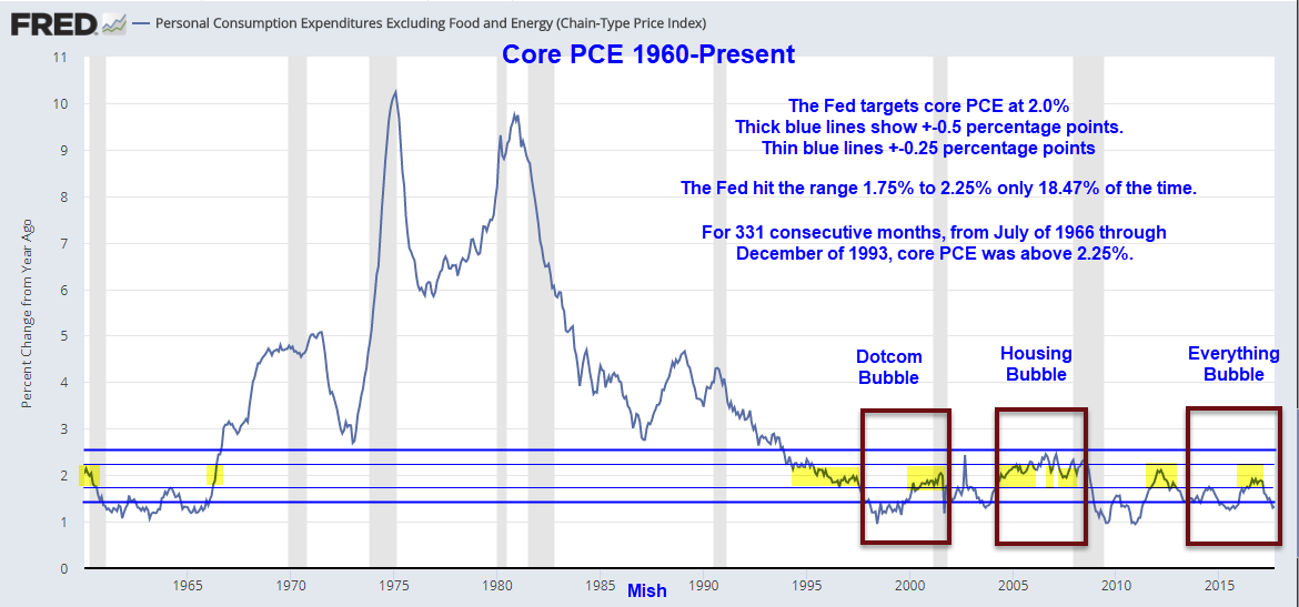 - For 331 consecutive months, from July of 1966 through December of 1993, core PCE was above 2.25%.