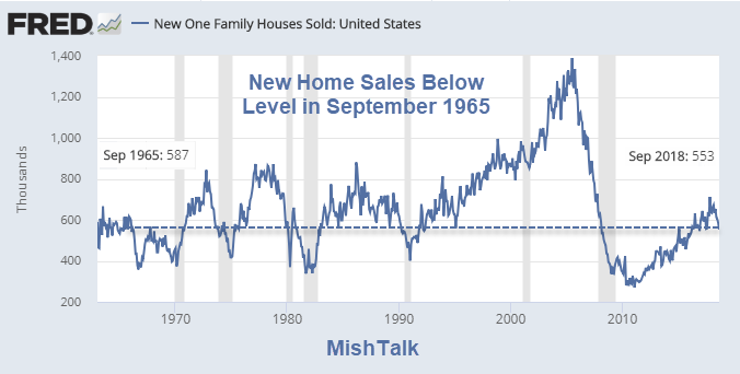 Before diving into the dismal numbers, recall that on September 26 I reported New Home Sales Rise Following Huge Two-Month Downward Revisions.