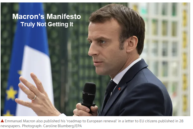 Overall I agree with the post, though I would quibble with two points. First, Macron supports more “interference in the markets.” The markets aren’t “free” now, though less interference will certainly be better. Second, if an EU army means the US army can come home, that would be a very useful purpose for the US. I know that’s wishful thinking though.