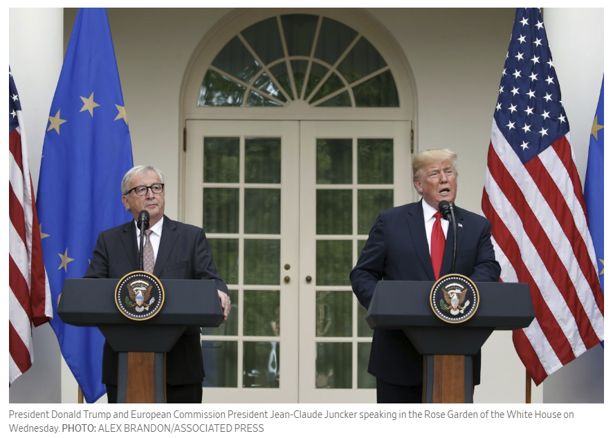 “This was a very big day for free and fair trade,” Mr. Trump said. He said the U.S. and EU would “resolve” the steel and aluminum tariffs he imposed earlier this year and the retaliatory tariffs the EU imposed in response.