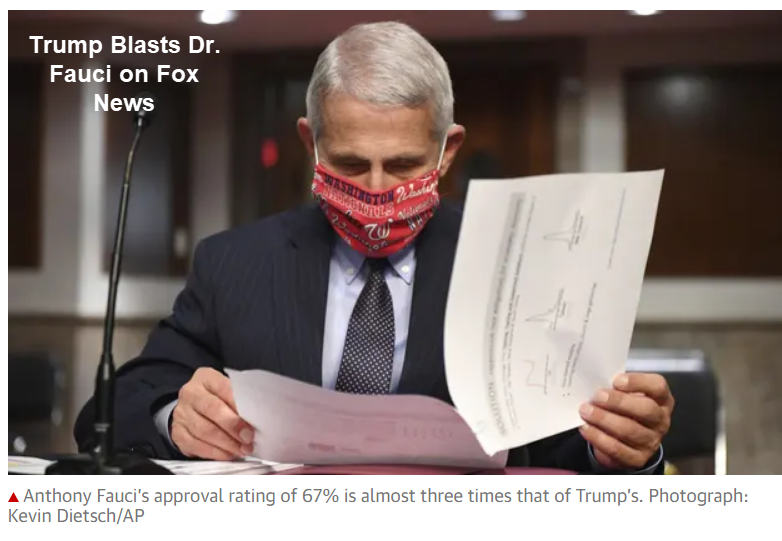 The Guardian reports Fauci sidelined as Trump’s White House steps up briefing campaign.