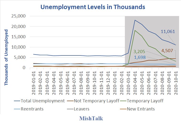 The trend of the line in red, “Not Temporary Layoffs” is troubling.