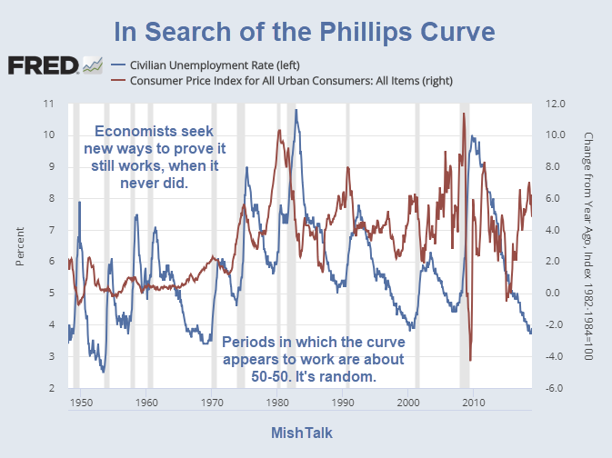 On August 29, 2017 I noted that a Fed Study Shows Phillips Curve Is Useless. Yet, economists keep trying.