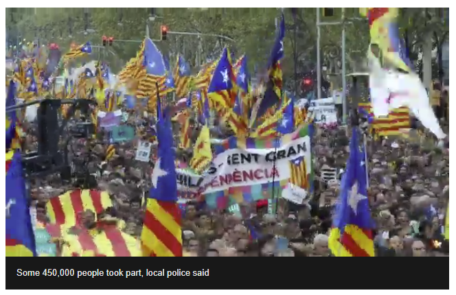 “This is a real coup d’etat,” Arnau Casadevall, a 27-year-old school receptionist, said at the demonstration, which Barcelona police estimated was attended by 450,000 protesters. “I have no intention to stop fighting until Catalonia is free.”