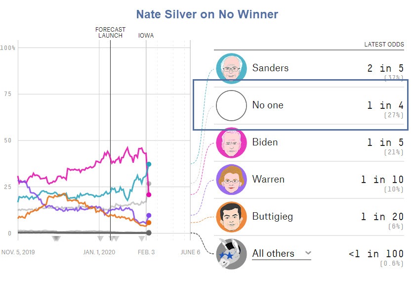 The lead chart is from Nate Silver’s post Who Will Win The 2020 Democratic Primary?