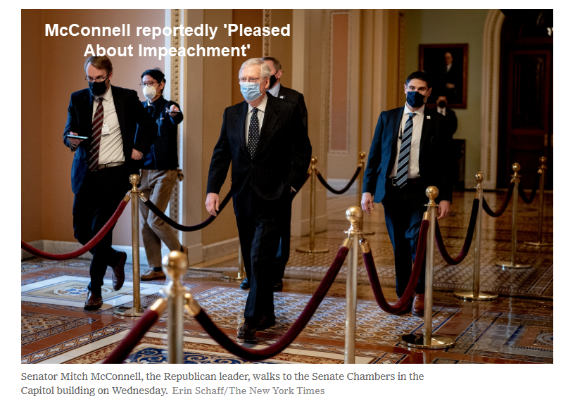 Senate Majority Leader Mitch McConnell is reportedly Pleased About Impeachment, believing it will be easier to purge Trump from the G.O.P.