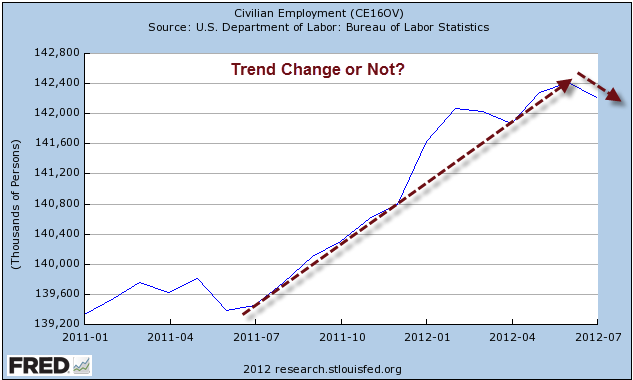 The latest jobs report showing a Gain of 163,000 on the Establishment Survey, But a Loss of 195,000 Jobs on the Household Survey got me to thinking about trends in employment.